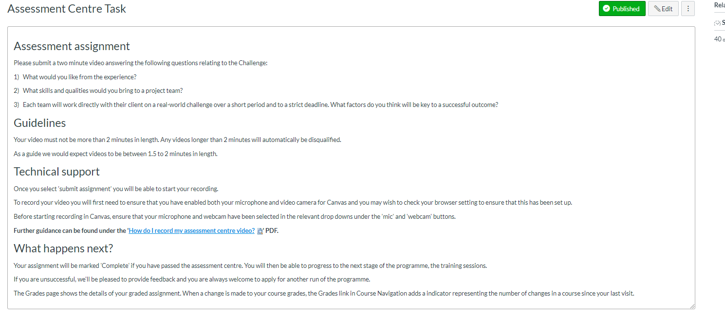 At the Oxford Strategy Challenge organised by the Careers Service, students are placed into groups of four and are briefed on a company who are facing a challenge. Members of this group draft and send a proposal letter to the company of ways to address this challenge. After the initial letter a meeting is held to present the initial proposal in further detail. After presenting to the client, group members report back on their experiences. The process is underpinned by reflective assessment, which is captured by way of short video assignments. Originally intended as a blended set of tasks, all face to face tasks can easily be adapted to communication via Teams meetings.